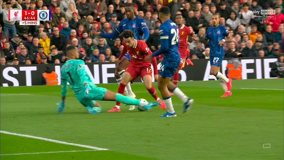 Ну в конце тайма судья назначил второй 11-метровый в ворота «Ливерпуля». Однако повтор показал, что вратарь «Челси» сыграл в мяч и не было какой-либо грубости против Джонса. VAR призвал главного арбитра передумать, и он изменил своё решение после просмотра эпизода.