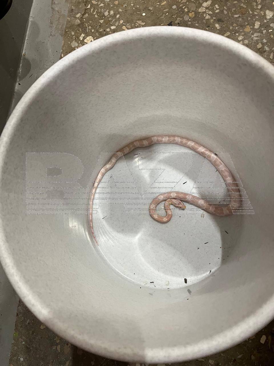Сегодня утром 70-летняя Татьяна из дома на улице Мусы Джалиля зашла к себе в туалет и нашла непрошеного гостя — в унитазе плавала экзотическая змея. Сначала женщина испугалась (Татьяна не знала, что маисовый полоз не ядовит), но потом решила, что страх — не повод разрешать всяким гадам ползать у себя по квартире, и поймала змею своими руками. После этого она посадила рептилию в ведро и позвонила родственнику с вопросом, что делать с пресмыкающимся. В итоге решили отдать полоза в добрые руки сотрудников МЧС.
