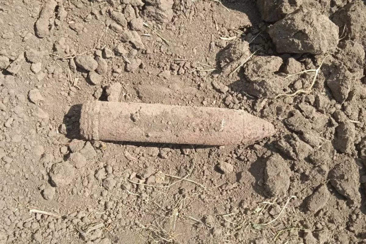 Снаряд времен Великой Отечественной войны был обнаружен во время проведения сельскохозяйственных работ на виноградном поле в Темрюкском районе.