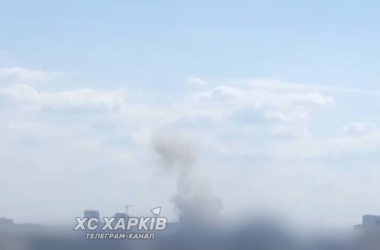 ❕ Очевидцы делятся фото дыма, поднимающегося на месте первого прилёта в Харькове