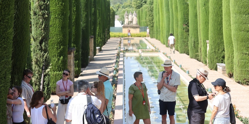 Con el Alcázar a medio abrir, pero un sol benévolo, Córdoba ofrece la posibilidad única de un paseo veraniego. «Hemos dado la vuelta por toda la otra parte y ahora iremos a la Judería y San Basilio», destacan dos amigas mayores, las madrileñas Lucía y María, haciendo referencia con esa otra parte a la zona de la Calahorra donde se encuentra su piso turístico: «Pensábamos que nos íbamos a morir de calor y vamos a tener un día estupendo». Y continúan su paseo entre las albercas tras alabar la belleza del lugar.