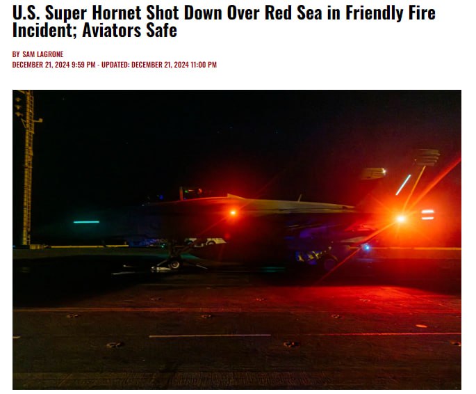 Американский истребитель F/A-18F Super Hornet с авианосца "Гарри Трумэн" сбит над Красным морем огнём с крейсера "Геттисберг"