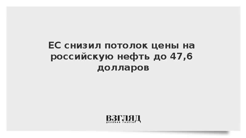 Решение о снижении потолка цены на нефть из России с шестидесяти до 47,6 долларов за баррель было принято Советом ЕС, передает РИА «Новости». При этом в заявлении говорится, что новый показатель соответствует текущим мировым котировкам.