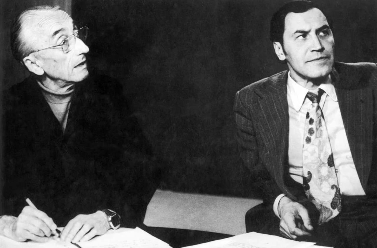 Николай Дроздов и первый гость передачи «В мире животных» — Жак-Ив Кусто, Москва, 1977 год.