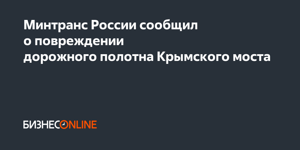 На пролетах Крымского моста со стороны Крыма имеется повреждение дорожного полотна, сообщается в официальном телеграм-канале минтранса РФ.