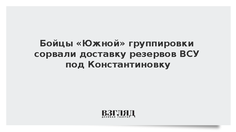 Подразделения «Южной» группировки войск ВС России сорвали попытки украинских войск доставить резервы и пополнение в район Константиновки, передает РИА «Новости». По информации пресс-центра группировки, точными ударами дронов уничтожены автомобильная техника и вооружение противника, а также живая сила.
