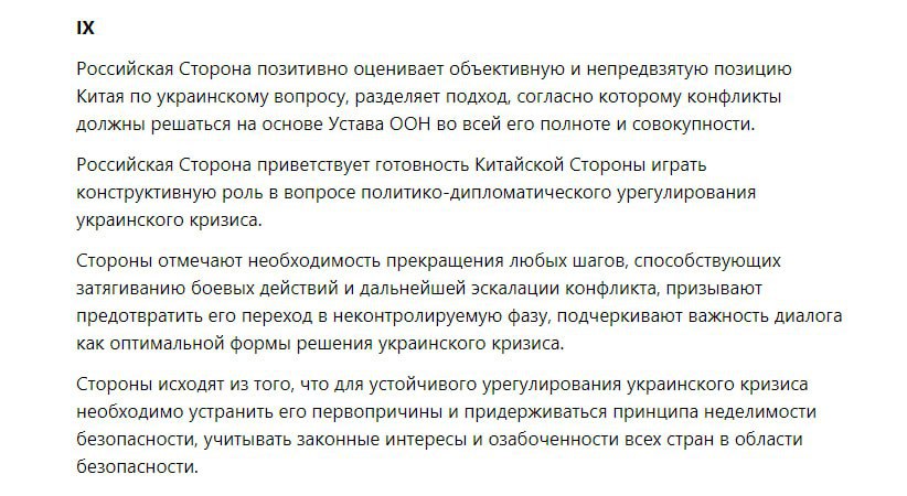 Пекин и Москва отметили необходимость прекращения любых шагов, которые могут привести к затягиванию боевых действий и дальнейшей эскалации.