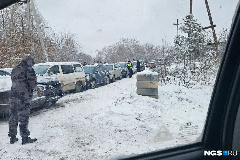 Принцип домино: 15 машин собрались в паровозик на новосибирской дороге — видео последствий массового ДТП