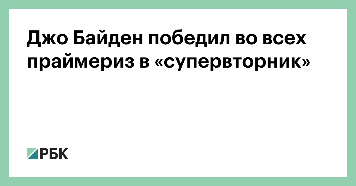 Действующий президент США Джо Байден одержал победу на праймериз во всех 14 штатах, где прошло голосование 5 марта, сообщает Associated Press. «Супервторник» — важнейший день внутрипартийных выборов, по итогам которых глава государства с высокой долей вероятности будет выдвинут Демократической партией на второй срок.