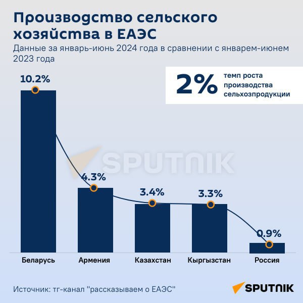 ☑️ 🇧🇾 Беларусь — лидер среди стран ЕАЭС по темпам роста сельхозпроизводства в первом полугодии 2024-го года