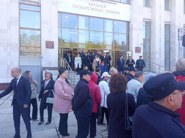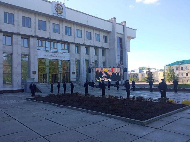 Народ потихоньку стекался к зданию Курултая с гвоздиками в руках. Перед правительственным зданием стояли караульные, будто почтенно приветствующие приходящих.