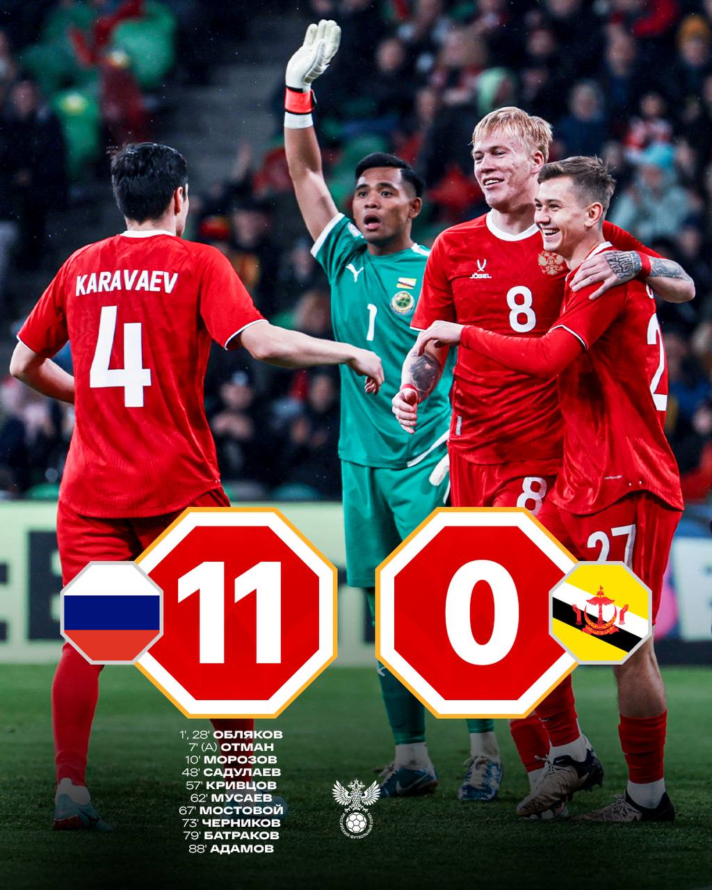 футбольной сборной России по забитым мячам в официальных матчах.