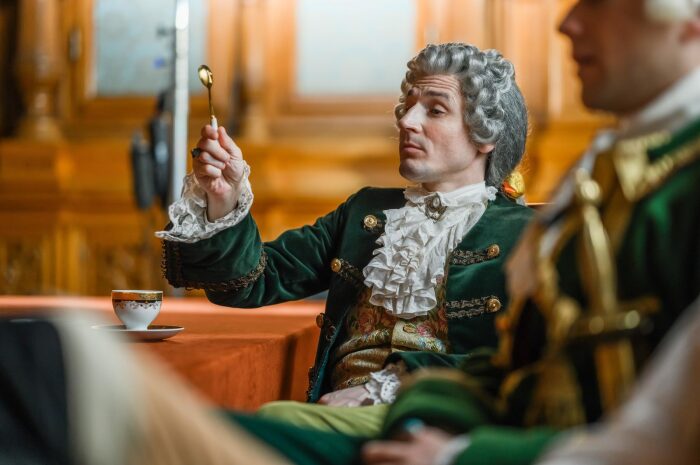 Лев Александрович всегда придумывал игры и развлечения для императрицы и придворных (кадр из сериала «Великая. Золотой век»).