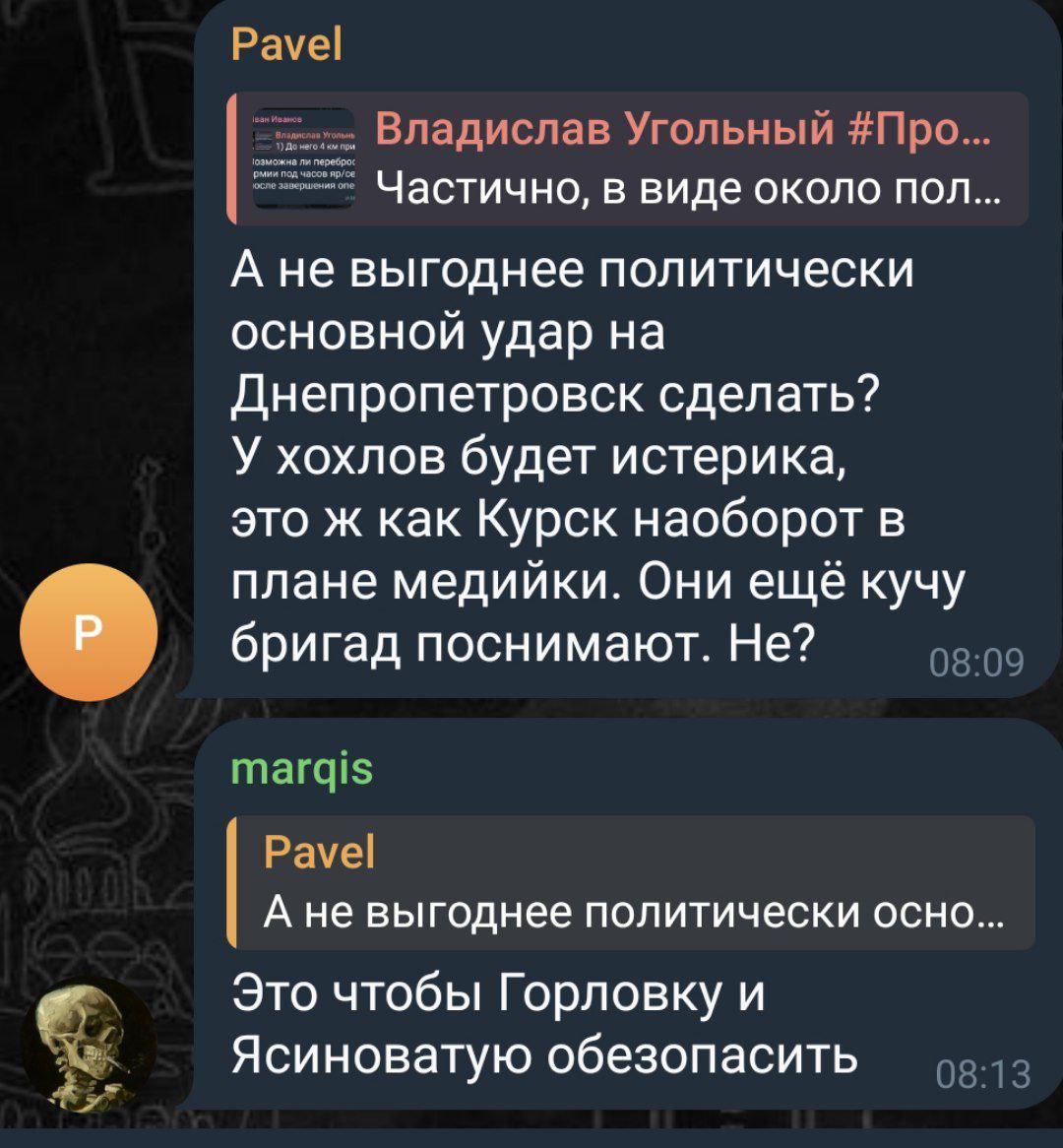 Но нам выгоднее как минимум сковать украинские силы в Красноармейске и Константиновке.