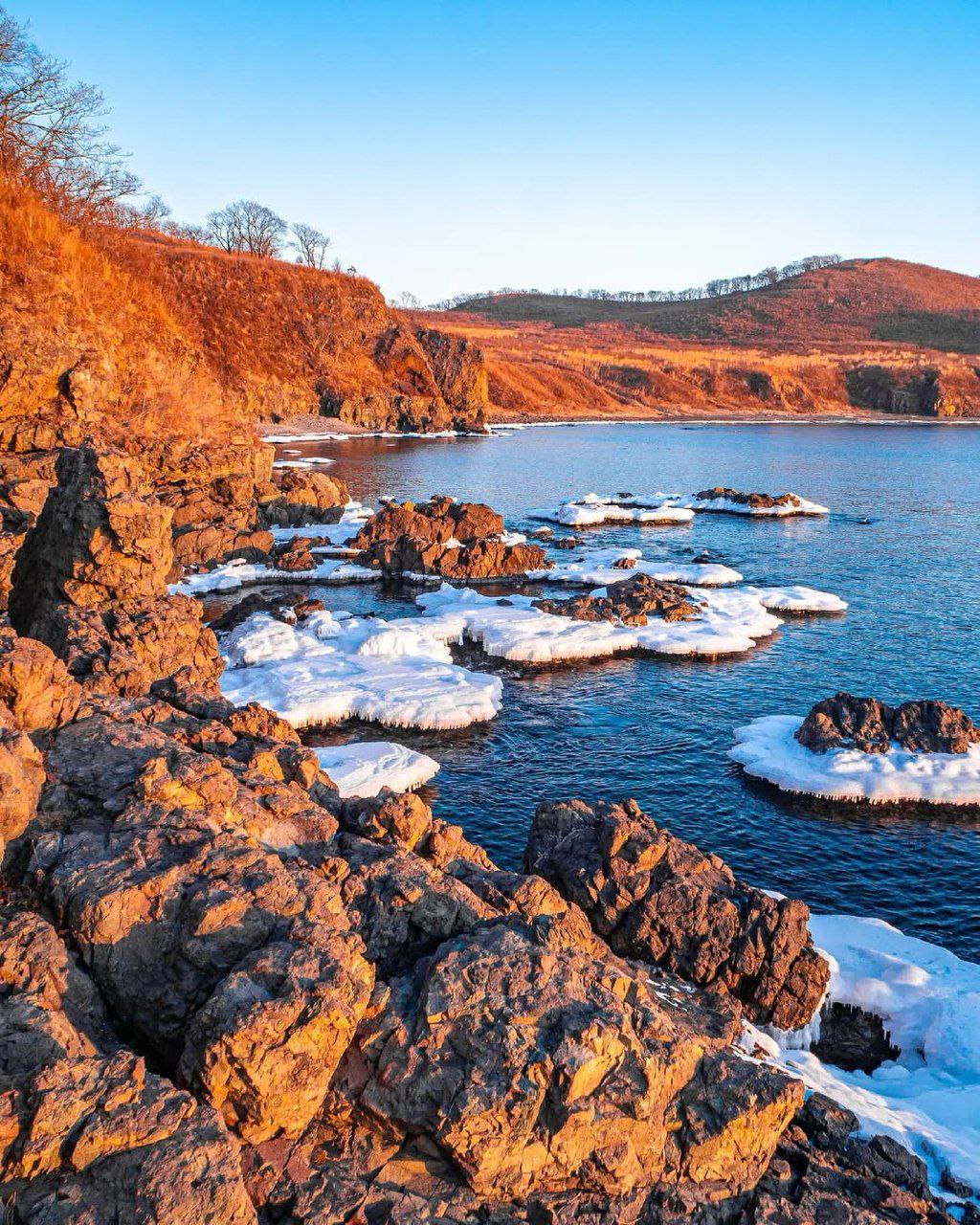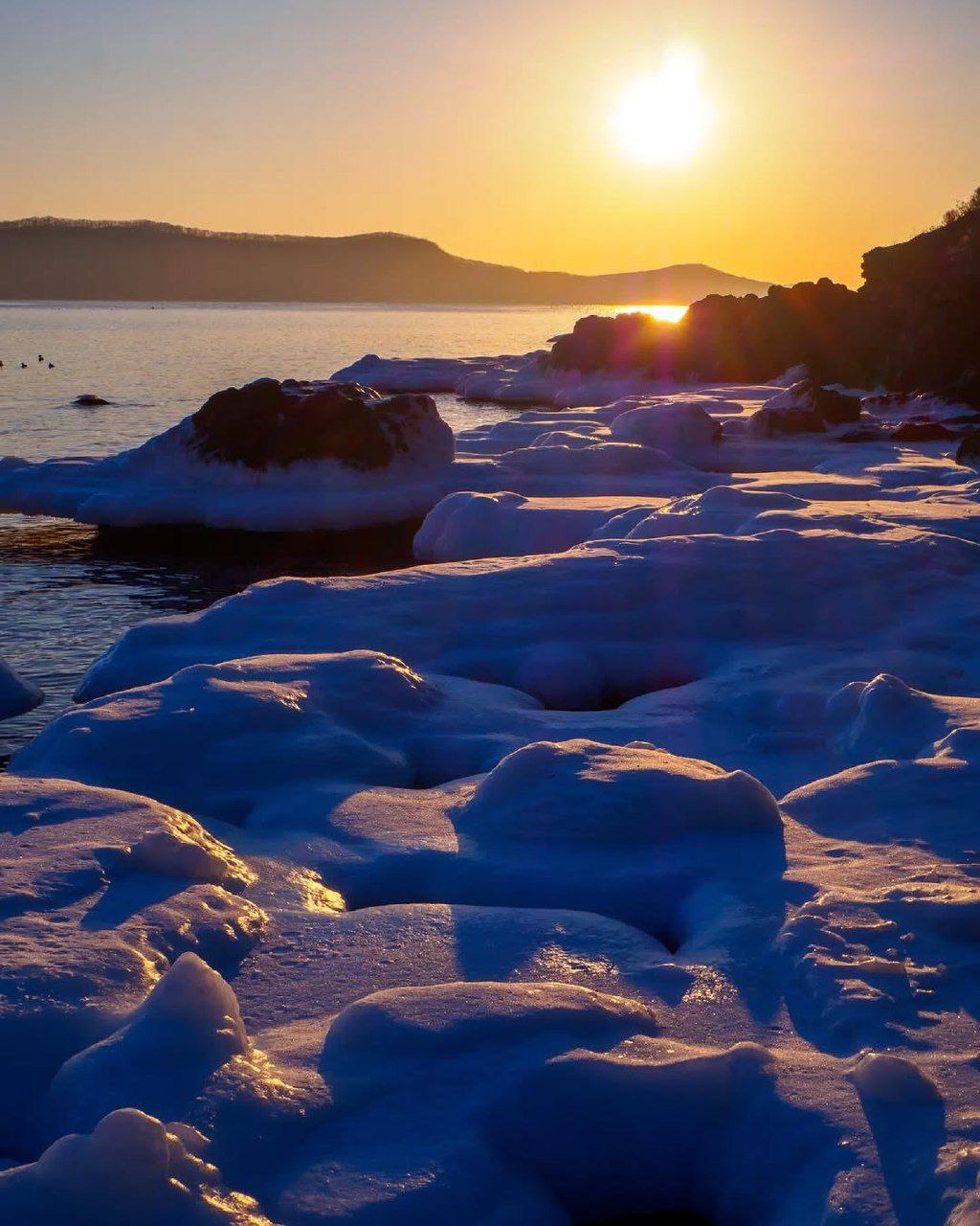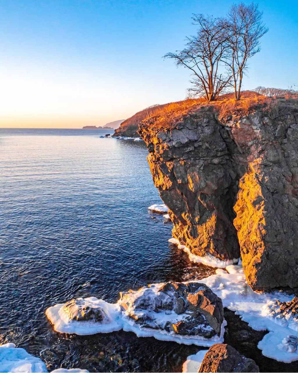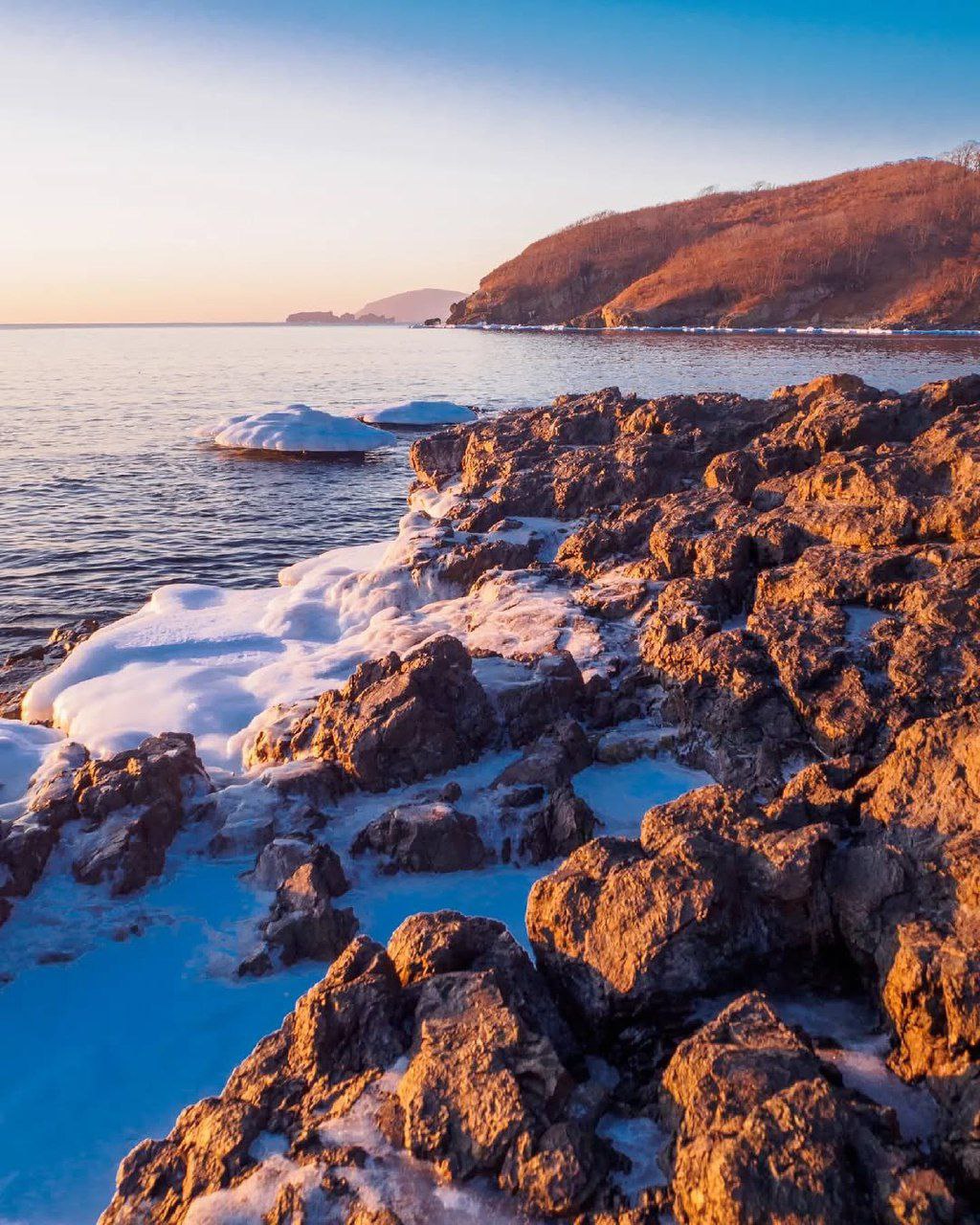 Красочный январский рассвет на мысе Гинтера в Приморье