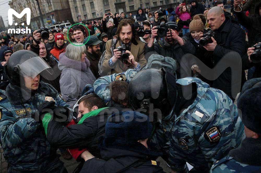Задержанный в Турции диверсант Евгений Серебряков участвовал в московских несанкционированных митингах на Манежной площади в марте 2014 года. Его лицо видно на кадрах оттуда.