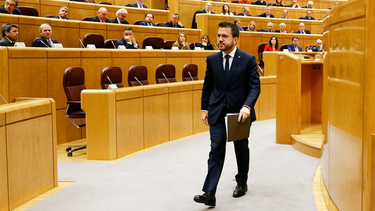 Aragonès ha vuelto al Senado apenas seis meses después de haber debutado en la Cámara alta precisamente defendiendo la amnistía en esa misma Comisión. Aquella sesión inauguraba la estrategia del PP de utilizar su mayoría absoluta en la Cámara para alargar la tramitación de la proposición de ley e intentar así desgastar al Gobierno de Pedro Sánchez. Ahora el president ha vuelto a comparecer no solo para reafirmarse en el valor de la amnistía en Cataluña sino también consciente de que el atril del Senado es una vitrina a exprimir en plena precampaña para las elecciones catalanas del 12-M. Desde ella se ha lanzado también a reivindicar el referéndum pactado y la financiación singular.