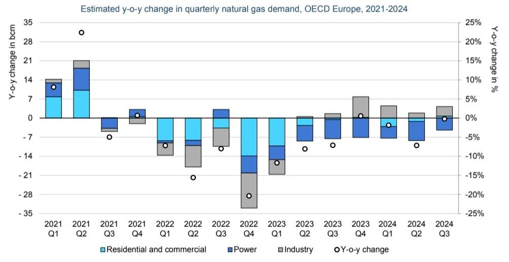 Однако он умно умолчал о том, за счет чего удалось добиться насыщения европейского рынка газа. А ларчик открывается просто - за счет сокращения электрогенерации и потребления газа промышленностью.