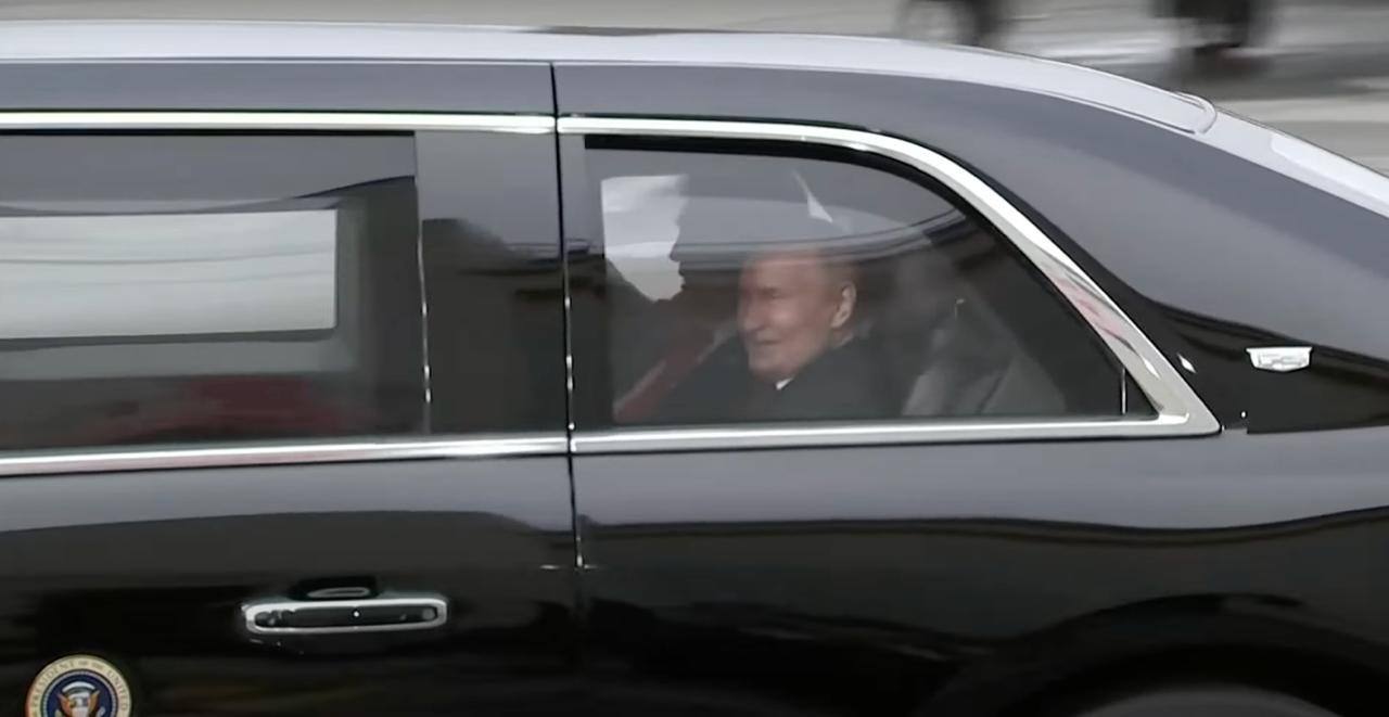Владимир Путин и Дональд Трамп покинули аэродром на «Кадиллаке» американского президента.
