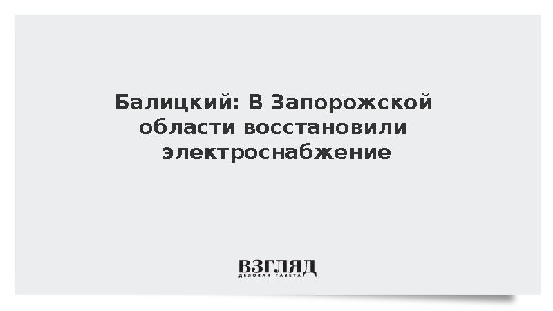 «Электроснабжение полностью восстановлено по всей территории Запорожской области. Благодарю энергетиков за оперативную работу», – написал он в своем Telegram-канале.