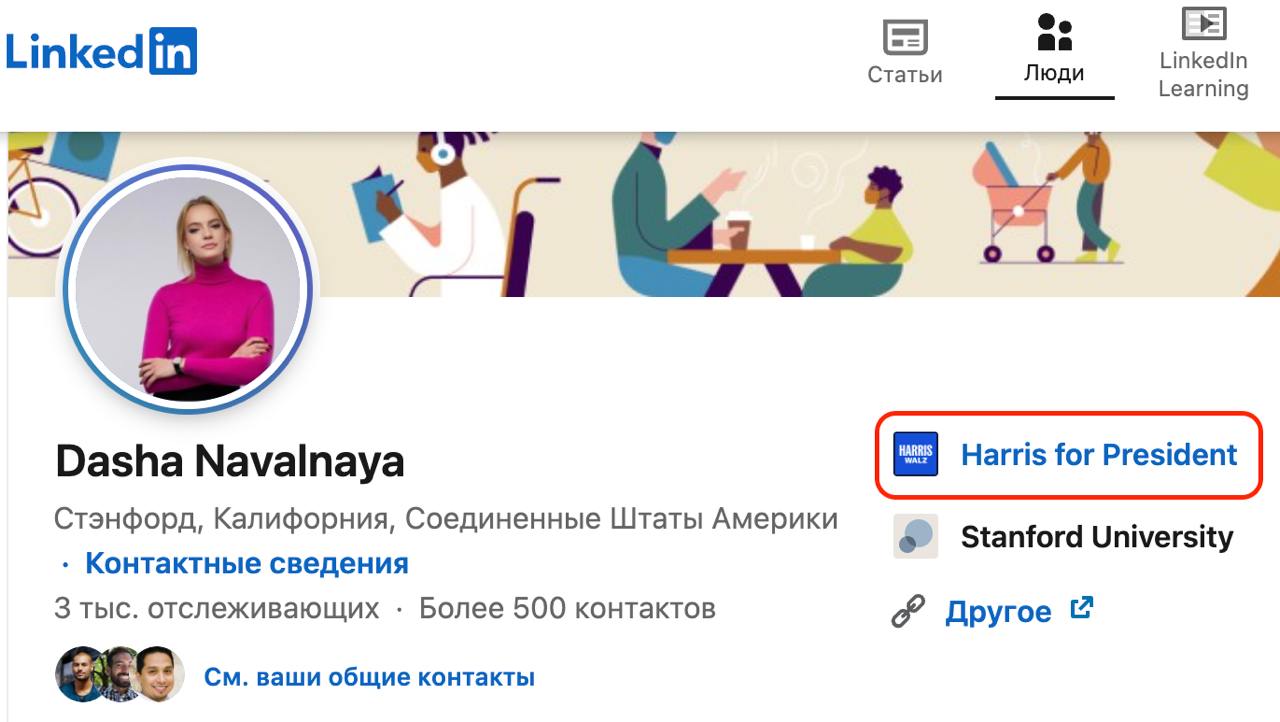 Дочь Навального стала сотрудником предвыборного штаба Камалы Харрис в «колеблющемся штате» Пенсильвания, сообщает Wonderzine. Эту информацию 23-летняя Дарья Навальная, окончившая в этом году Стэнфордский университет (психология и политология), указала в своем LinkedIn.
