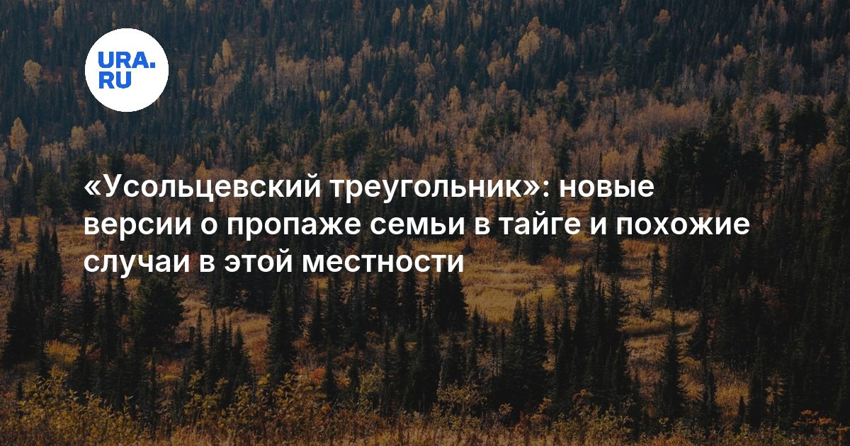 В конце сентября 2025 года в тайге Красноярского края бесследно исчезла семья: 64-летний Сергей Усольцев, его супруга Ирина и их пятилетняя дочь Арина. Поисковые мероприятия ведутся уже более месяца, однако обнаружить какие-либо следы пропавших пока не удалось. Жители региона уже дали этому участку тайги название «Усольцевский треугольник», поскольку исчезновение семьи оказалось не единственным таким случаем в данной местности.
