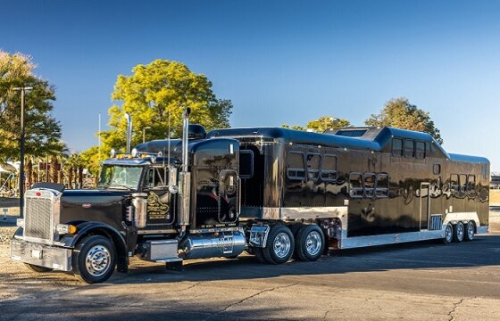 Лимузин-грузовик Midnight Rider получил законное место в Книге рекордов как самый большой и тяжелый. Уникальность большого лимузина – в наличии двух роскошно отделанных уровней. Внутри отделка деревом и латунью, несколько ванных комнат, бар, зоны для отдыха и обслуживающий персонал из пяти человек.