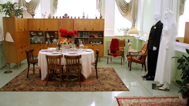 Одна из экспозиций воссоздает обстановку типовой комнаты 70-х годов XX века, в которой родные и друзья ждали жениха и невесту из Дворца бракосочетания. Здесь представлены предметы быта, наряды жениха и невесты, а также атрибутика процесса бракосочетания той эпохи.
