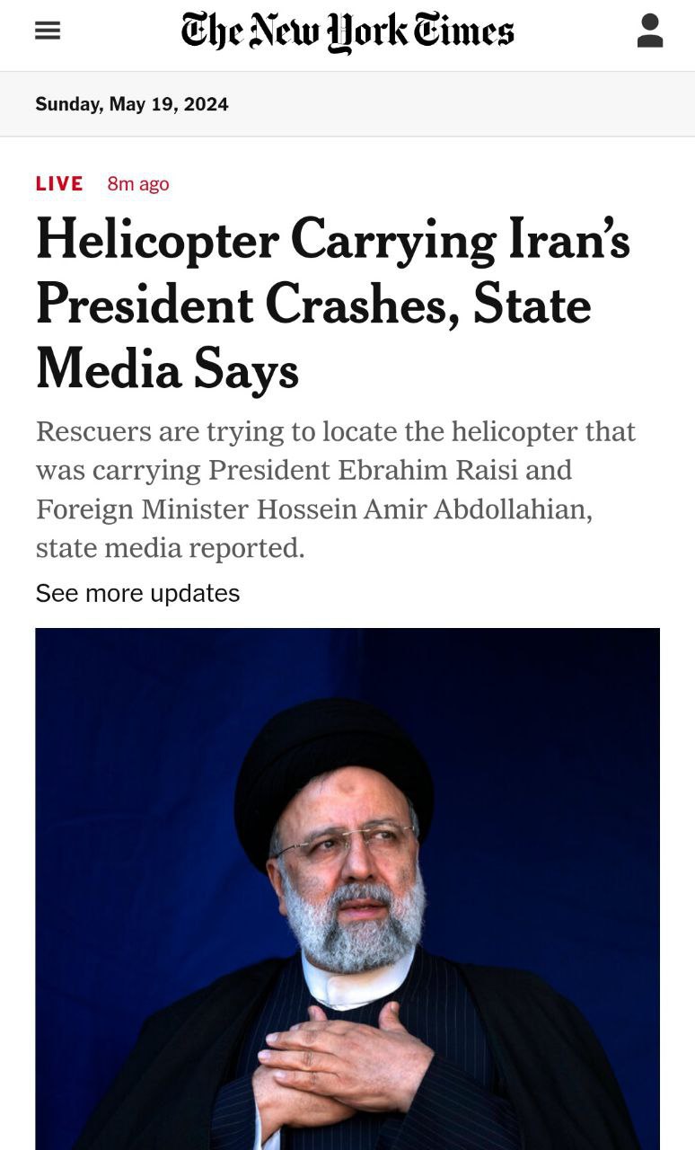 Инцидент с вертолётом президента Ибрахима Раиси произошёл «в деликатный момент» для международных отношений, сообщает New York Times со ссылкой на источники.