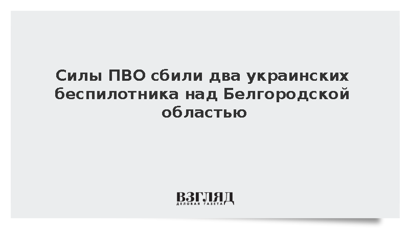 В Белгородской области системы ПВО сбили два украинских беспилотника в интервале с 15.00 до 15.30 мск.