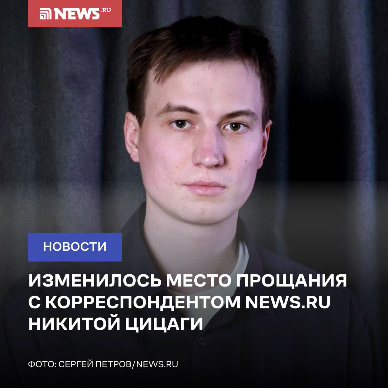 ⭕️⭕️ Изменилось место прощания с корреспондентом NEWS.ru Никитой Цицаги