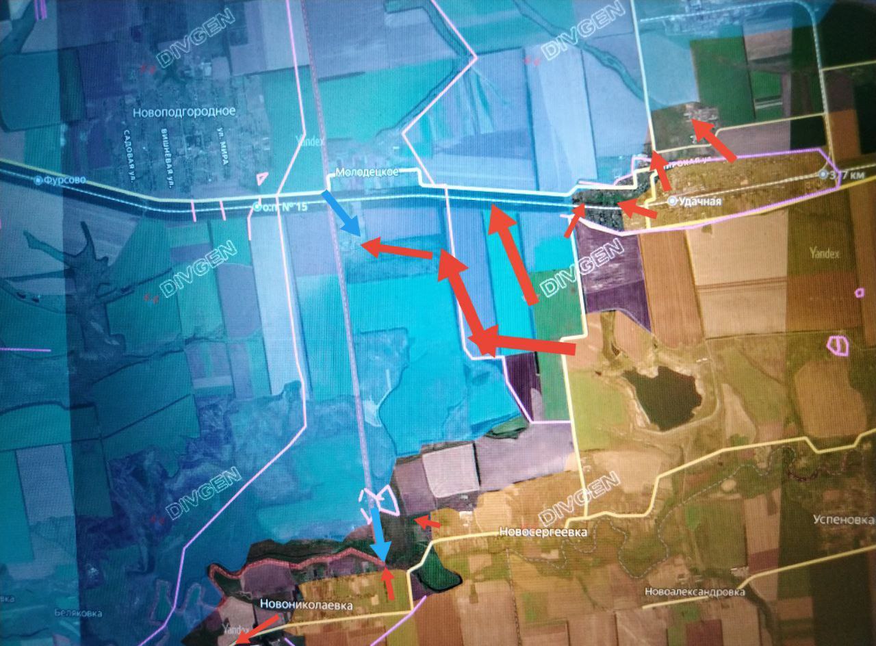 На правом фланге наши подразделения продвинулись западнее Удачного и ведут бои на южной окраине Молодецкого.