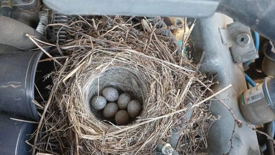 В брошенном автомобиле в Березовском птицы устроили два гнезда: одно в бензобаке, другое — под капотом.