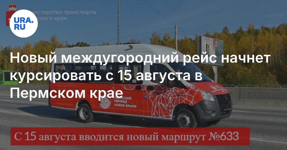 «С 15 августа вводится новый межмуниципальный маршрут №633 „Чернушка — Кунгур“. Его обслуживанием будет заниматься ИП Ильин О.Ю.», — написано в telegram-канале ведомства.