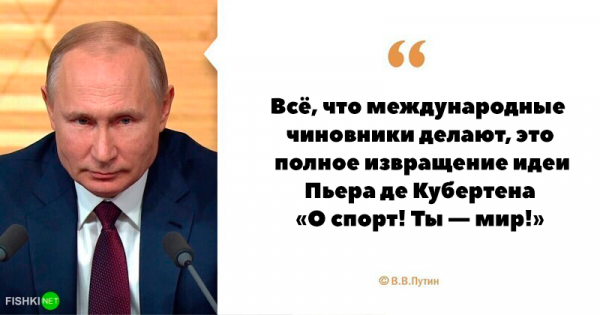 Это по поводу запрета российским спортсменам выступать в составе национальной сборной. Кстати, ВВП не против выступления наших спортсменов на Олимпиаде в нейтрально статусе. Говорит, что все и так знают, откуда спортсмен.