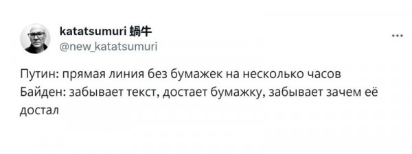 В Твиттере сравнивают президентов. Но надо сказать, что всё-таки ВВП пользуется бумажками. Обычно на бумажках ему приносят всякие цифры: на сколько повысился ВВП, рост зарплат и другие удивительные показатели.