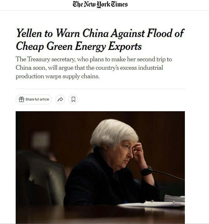 Там она заявит, что избыточное промышленное производство в стране искажает цепочки поставок, пишет The New York Times.