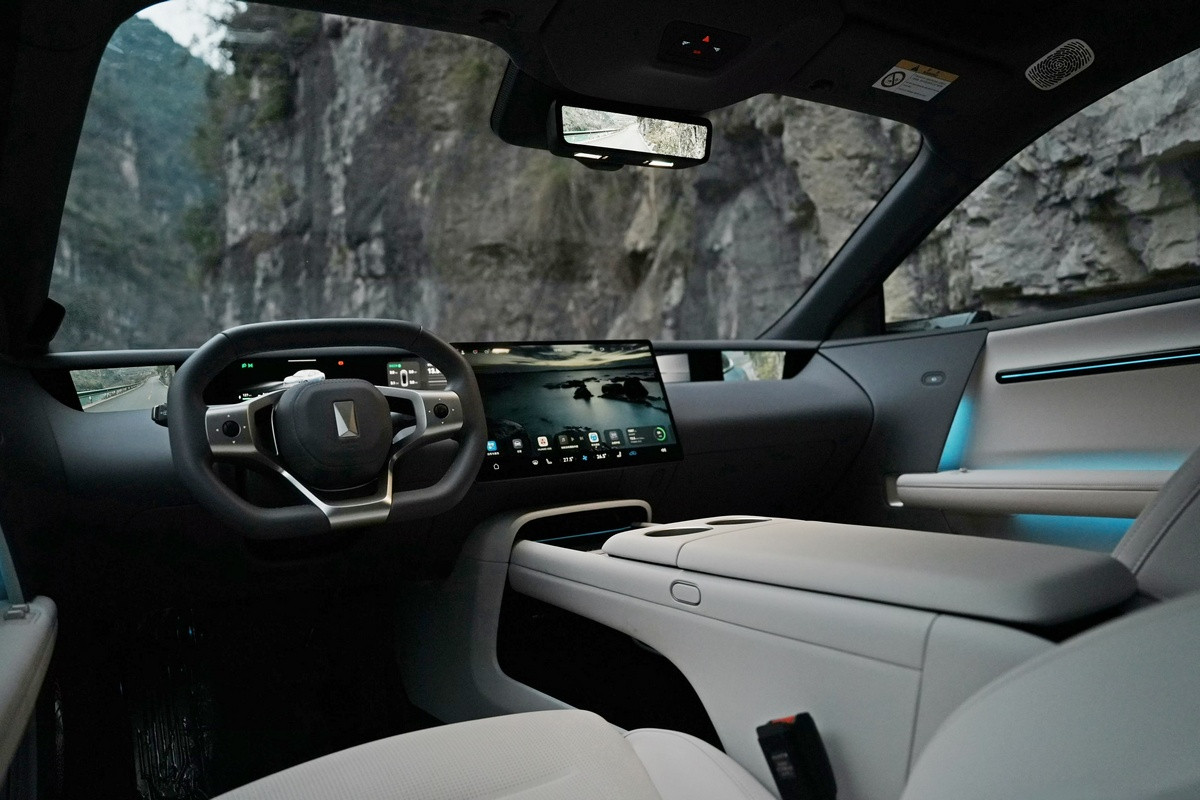 Как и облик, интерьер Avatr 06 оформили в фирменном стиле. Седан имеет табло почти во всю ширину передней панели, крупный центральный тачскрин мультимедиа, «сплющенный» руль и двухэтажный тоннель. Для модели предусмотрены камеры вместо привычных наружных зеркал, так что внутри могут быть установлены дополнительные дисплеи, которые транслируют картинку с тех самых камер.