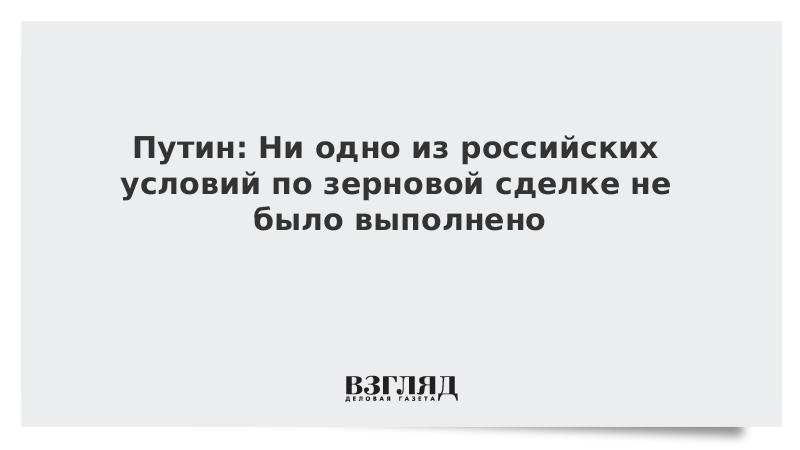 Так, Путин напомнил, что зерновая сделка содержала обязательства по снятию незаконных препятствий для поставок российского зерна и удобрений на мировые рынки. «Ни одно из условий сделки … выполнено не было», – заявил президент.