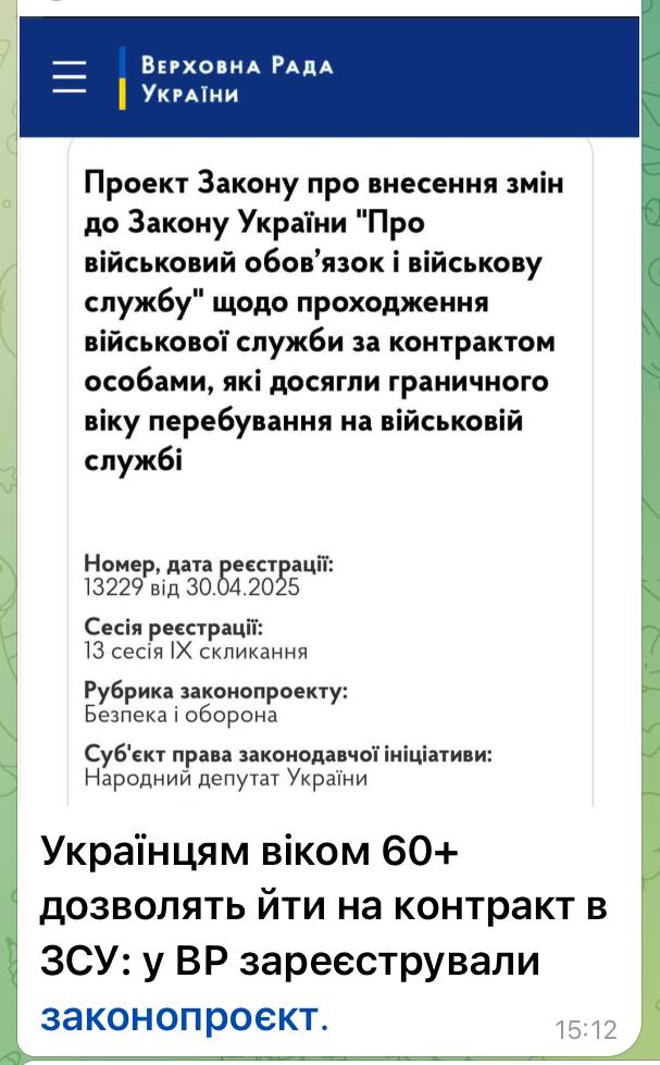 В Раде зарегистрирован проект, позволяющий отправлять на фронт мужчин старше 60 лет.