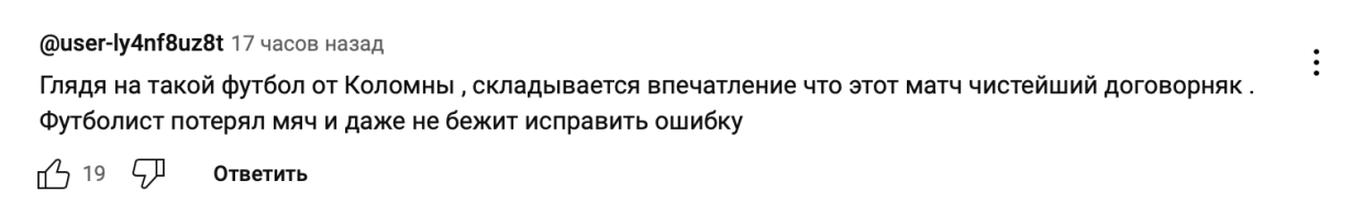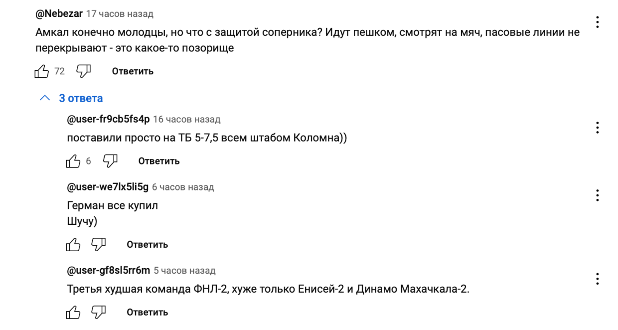 Вот несколько комментариев под видеообзором на официальном YouTube-канале Кубка России:
