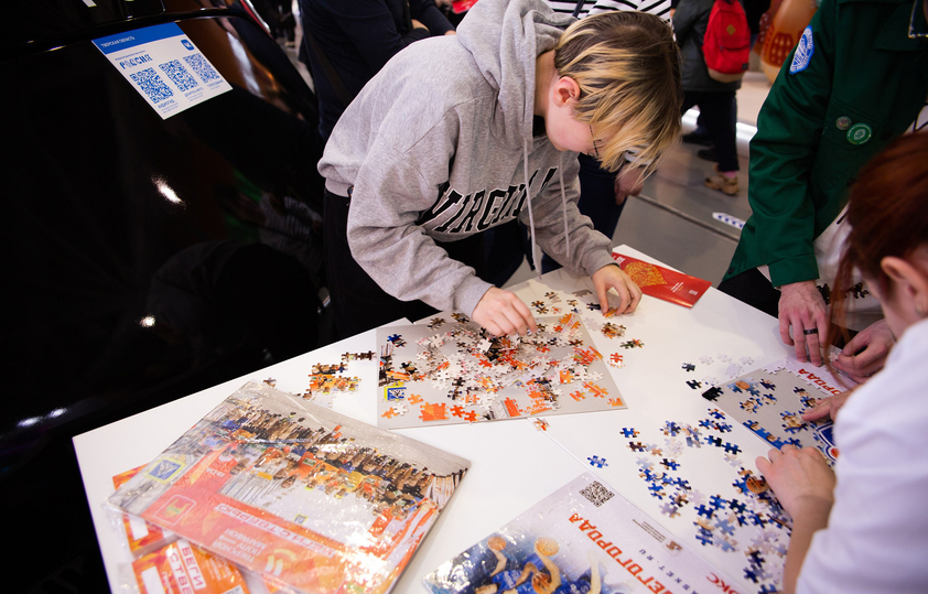 Посетителей стенда знакомили с популярными в Верхневолжье видами спорта, среди которых гребля, баскетбол и легкая атлетика. Участникам предлагалось опробовать гребной тренажер, пробежаться на беговой дорожке и собрать большой пазл с фотографией тверского баскетбольного клуба.