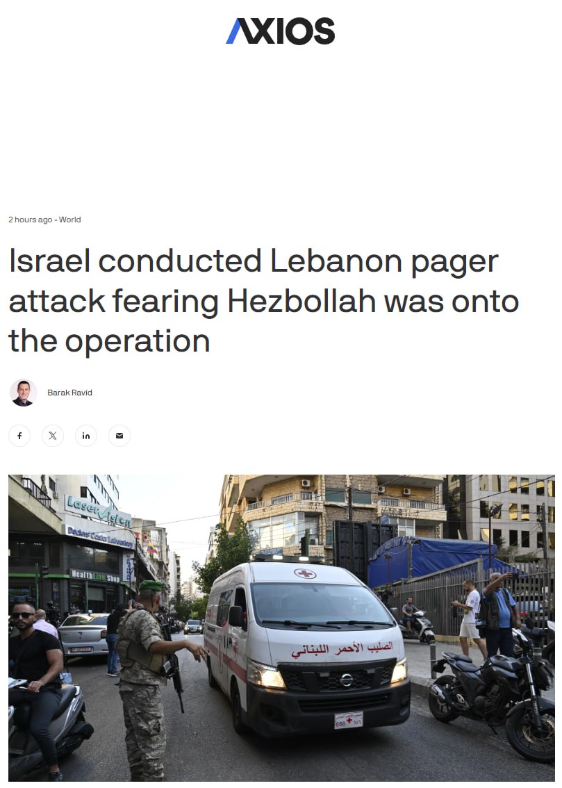 За несколько минут до массовой детонации пейджеров в Ливане министр обороны Израиля звонил шефу Пентагона