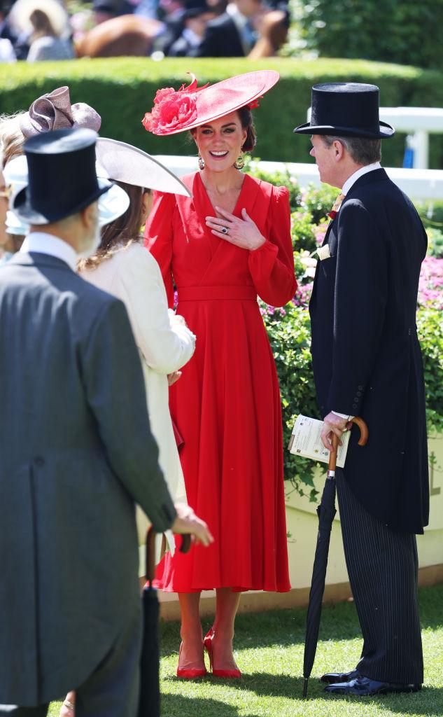 Удивительно, что принцесса выбрала такое яркое платье, отойдя от предыдущих образов Аскота, где обычно выбирала пастельные тона в более приглушенные цвета. Это первый раз, когда Уильям и Кейт посетили любимое мероприятие Елизаветы после ее смерти в сентябре. Ее Величество часто называли самой большой поклонницей Royal Ascot.