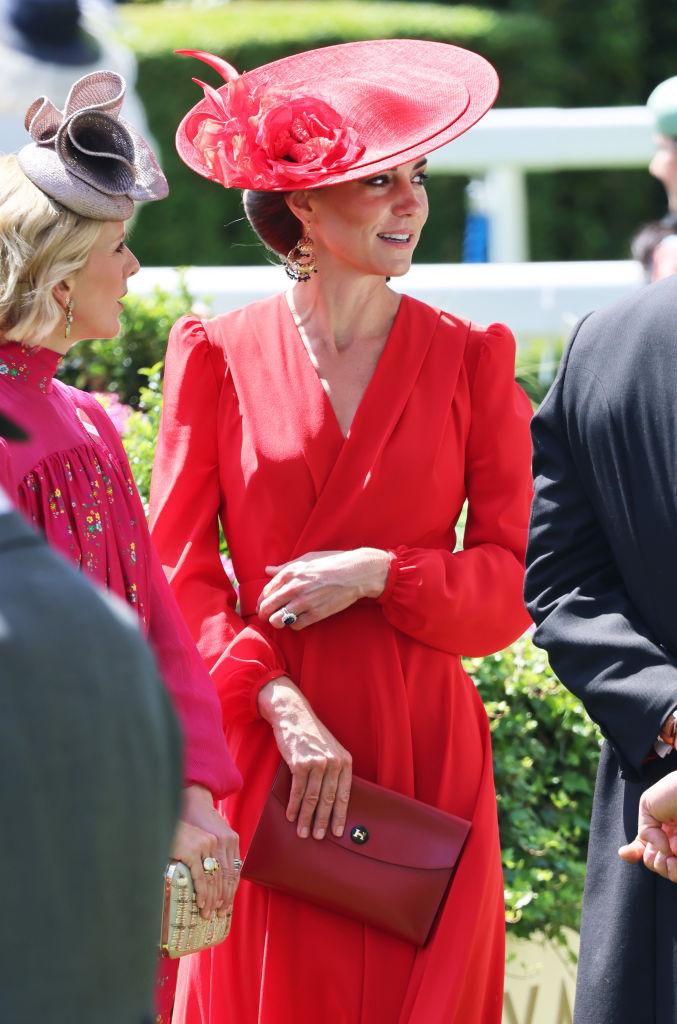 Мы не перестаем восхищаться образами потрясающей Кейт Миддлтон, которая сегодня прибыла на Королевские скачки в Аскот в алом платье Alexander McQueen с длинным рукавами и шляпке Philip Treacy с маками. Кажется и самой Кейт понравилось быть в центре внимания и обсуждения. Начиная с ее ошеломительного появления на коронации, Кейт каждый раз поражает воображение новыми образами, причем очень яркими.