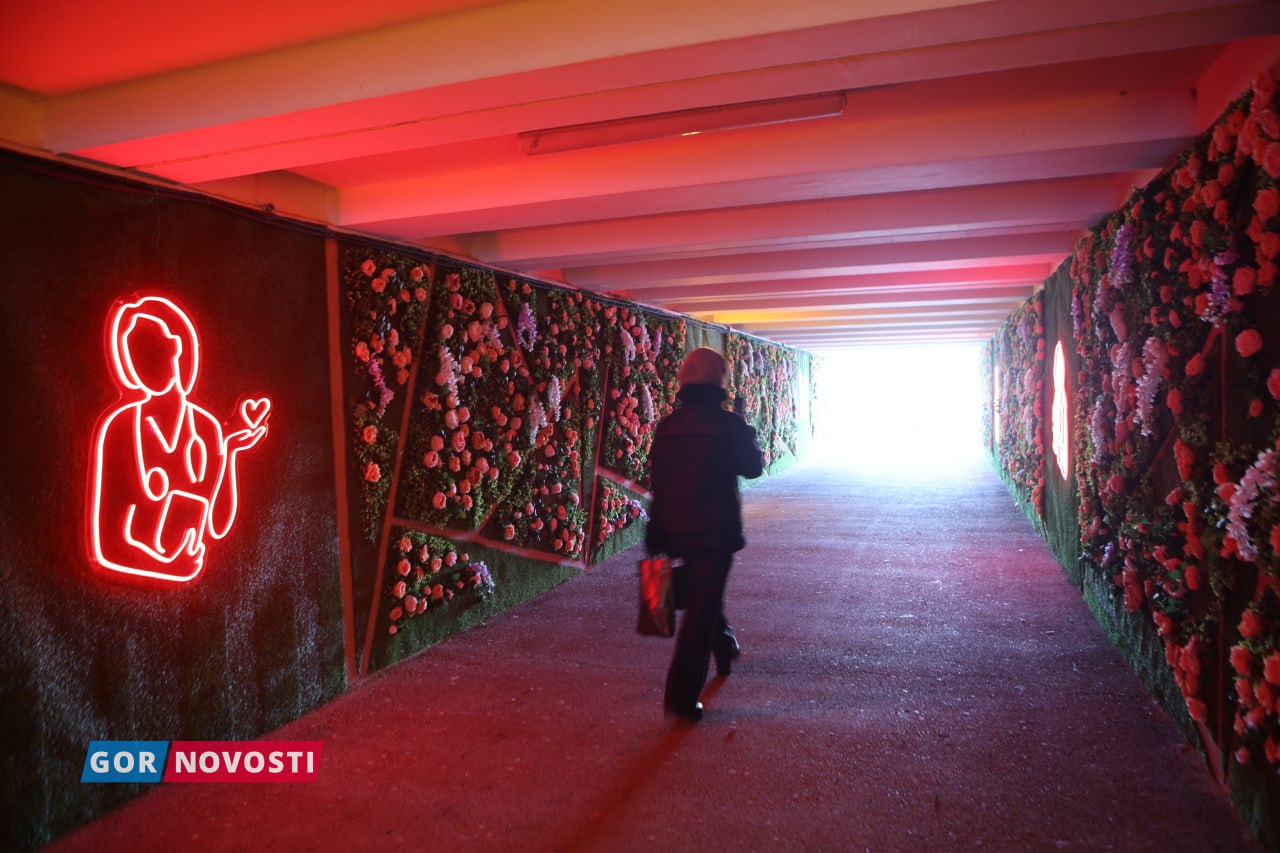 В переходе между Сибирским государственным институтом искусств имени Дмитрия Хворостовского и площадью Мира накануне 8 Марта появилось вот большое цветочное панно!