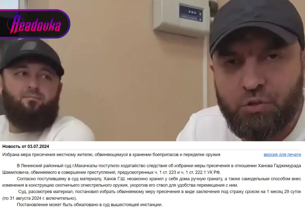 В деле дагестанского защитника никабов Хаджимурада Ханова, который был судим в Германии за вербовку в ИГИЛ, все оказалось намного серьезнее. Как следует из заявления суда, против него возбуждено дело не о хранении оружия, а о незаконной переделке оружия и хранении взрывчатки. По версии следствия, арестованный 3 июля Ханов хранил у себя дома ручную гранату и обрез охотничьего ружья, который укоротил для удобства перемещения со стволом. За хранение гранаты ему грозит от 6 до 8 лет колонии, а за запрещенную модификацию оружия — от 4 до 6 лет.