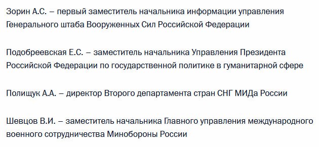 ❗️Кремль опубликовал состав экспертов для переговоров с Украиной.
