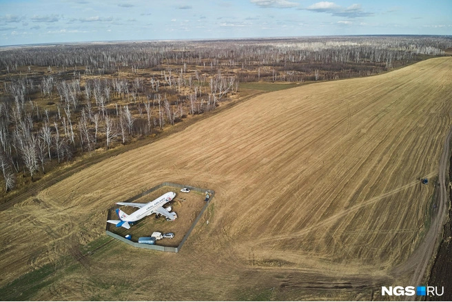 Самолет «Уральских авиалиний», который прошлой осенью приземлился на пшеничном поле у села Московка в Новосибирской области, до сих пор стоит на прежнем месте. Авиакомпания оплачивает аренду поля его владельцу — колхозу имени Ленина. Об этом 5 апреля пишет НГС со ссылкой на главу Убинского района Олега Конюка.