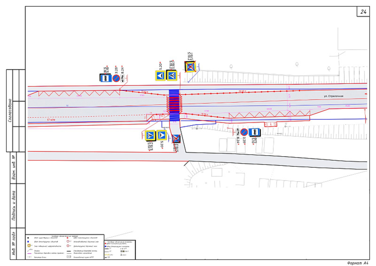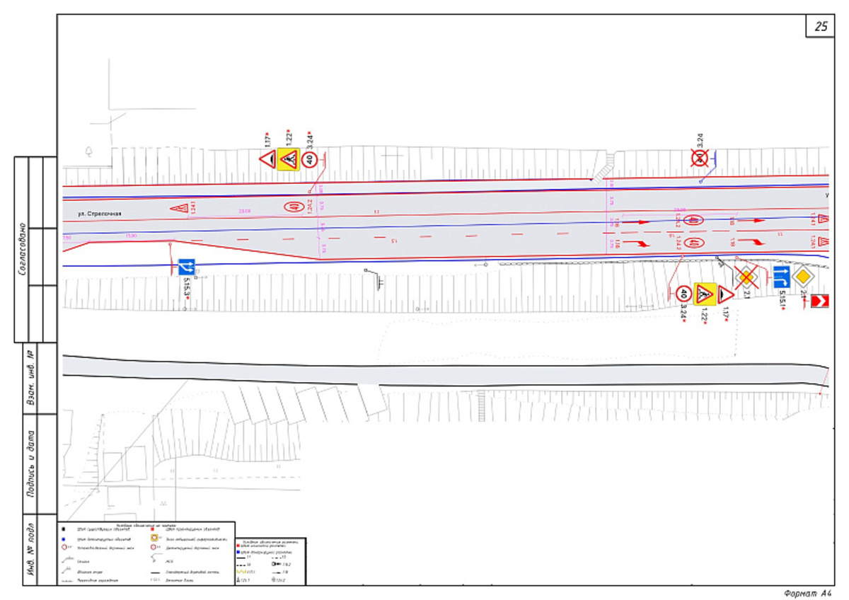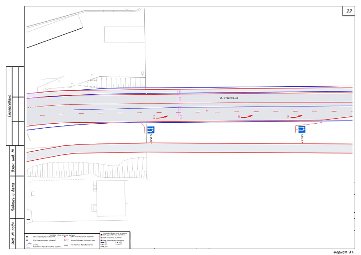 Движение по улице Стрелочной от перекрестка с улицей Жигура до перекрестка с улицей Деревенской будет организовано в одну полосу в каждом направлении. С одной стороны дороги будут обустроены парковочные места, на остановке «Молокозавод» – обустроены карманы и посадочные площадки, а пешеходный переход совместят с искусственной дорожной неровностью (ИДН).